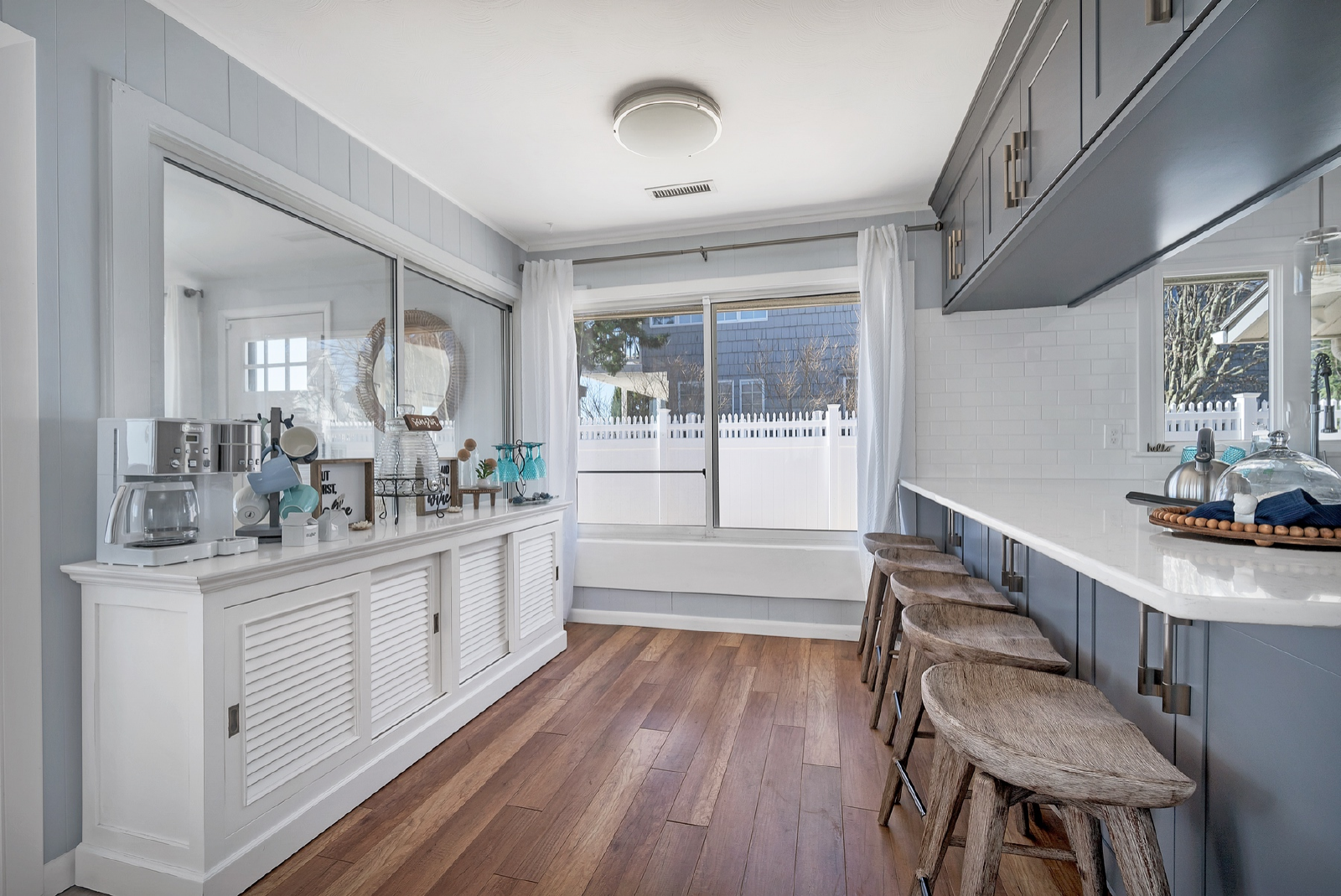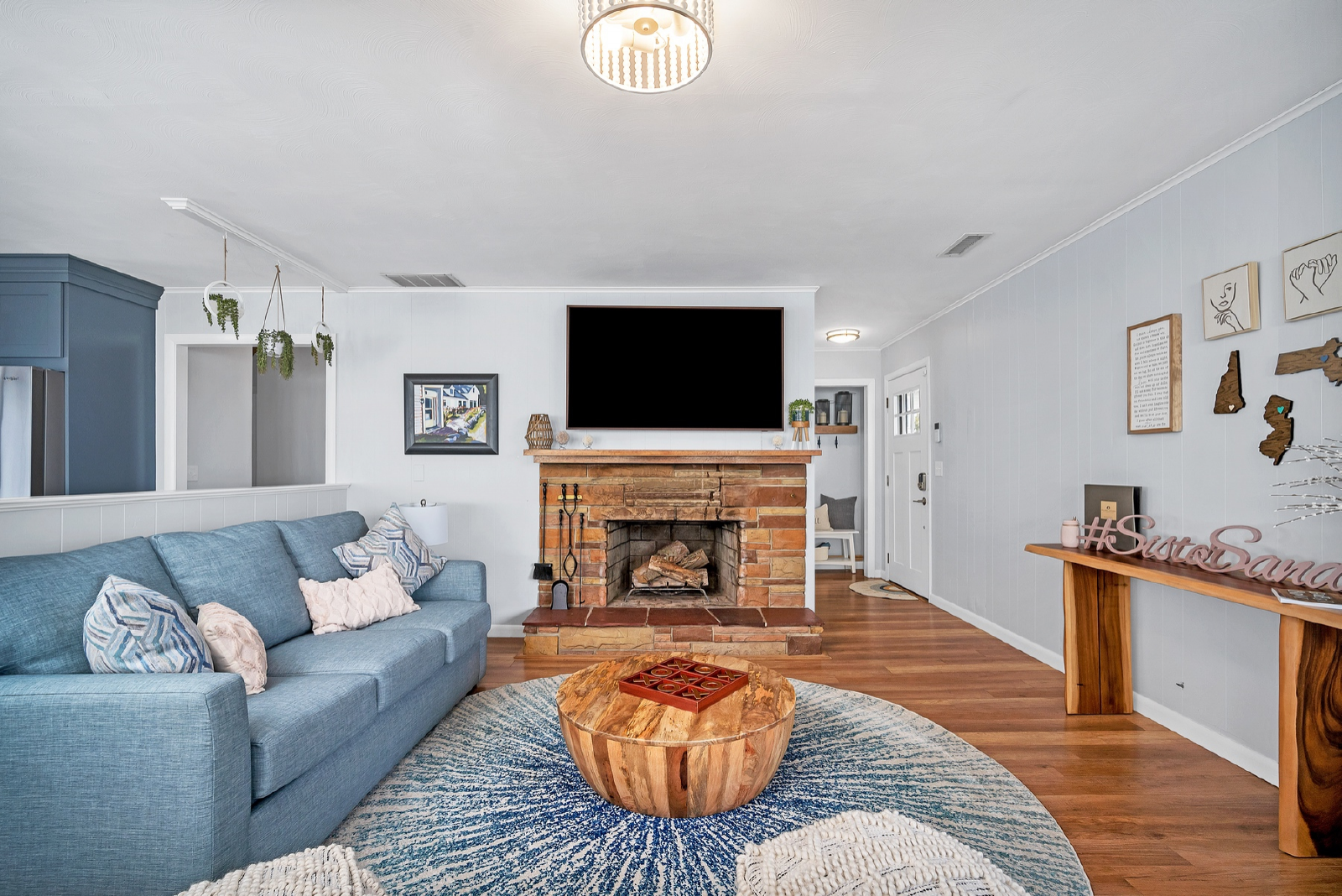 The home is designed as uniquely modern with a comfortable boho beach style. The common areas are open & spacious with practical amenities & precious décor. There are three bedrooms with two full bathrooms and a queen sleeper sofa and a large coastal backyard space with patio, beach sand, & the Long Island sound that goes in and out with the tide (the sand bars are amazing)!