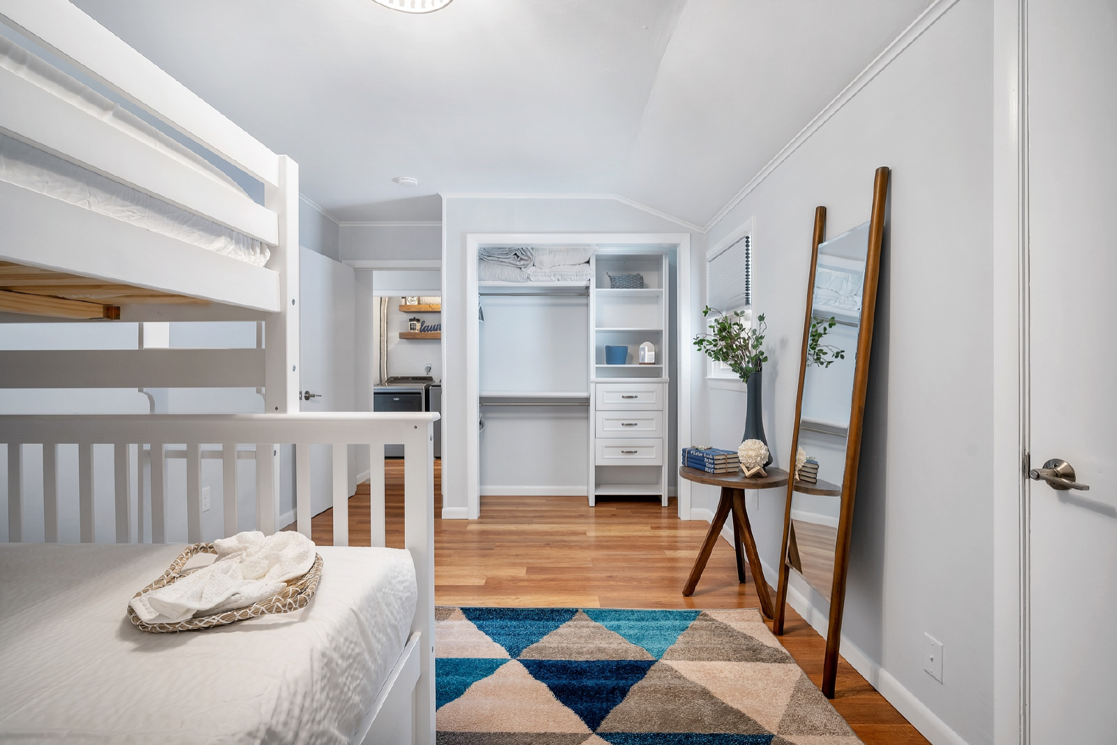 ● Bedroom 3: Pyramid bunk with Full on bottom, Twin on top, & Twin Trundle Bed below, full length mirror, closet with storage, sound machine, and black out shades