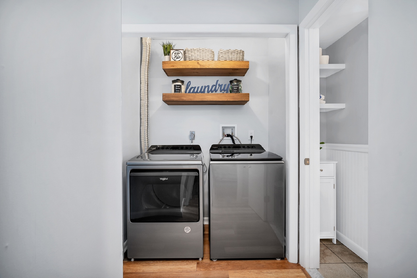 ● Pro-series Whirlpool full washer & dryer with laundry pods, detergent, and dryer sheets provided.