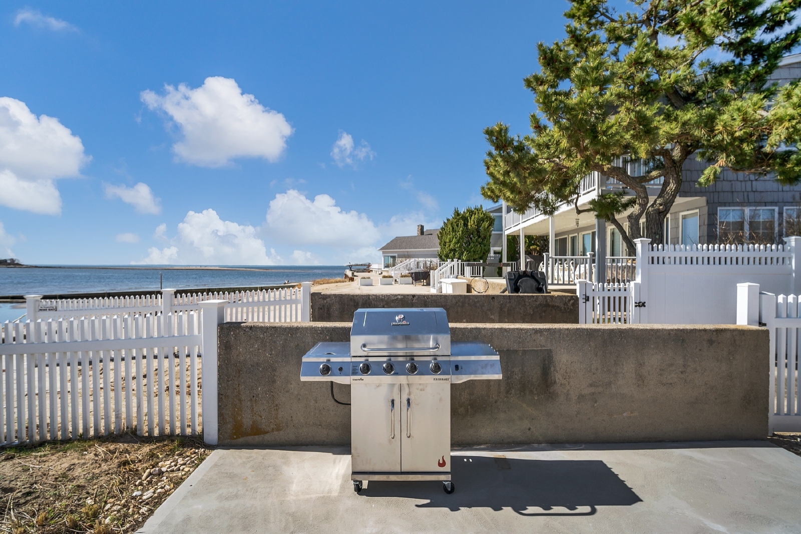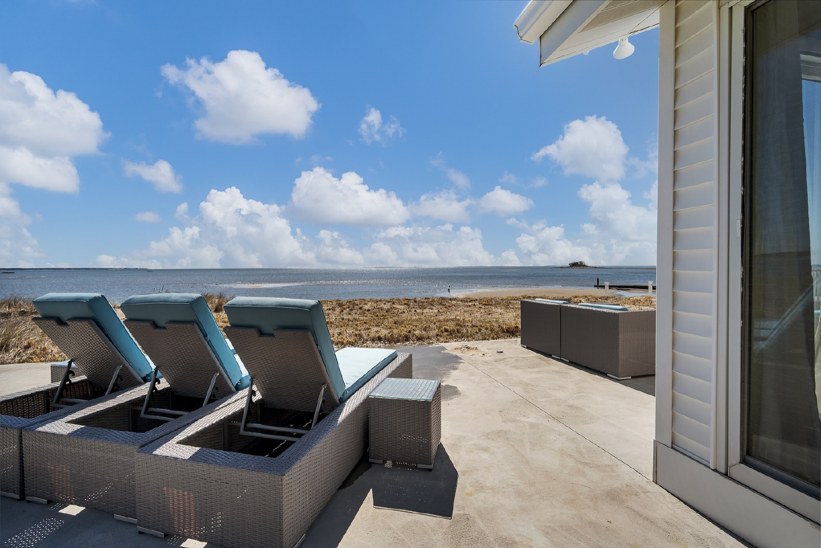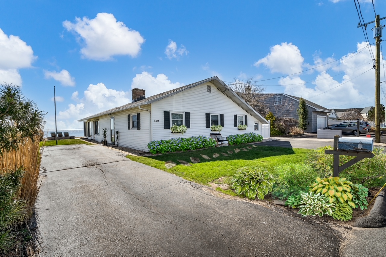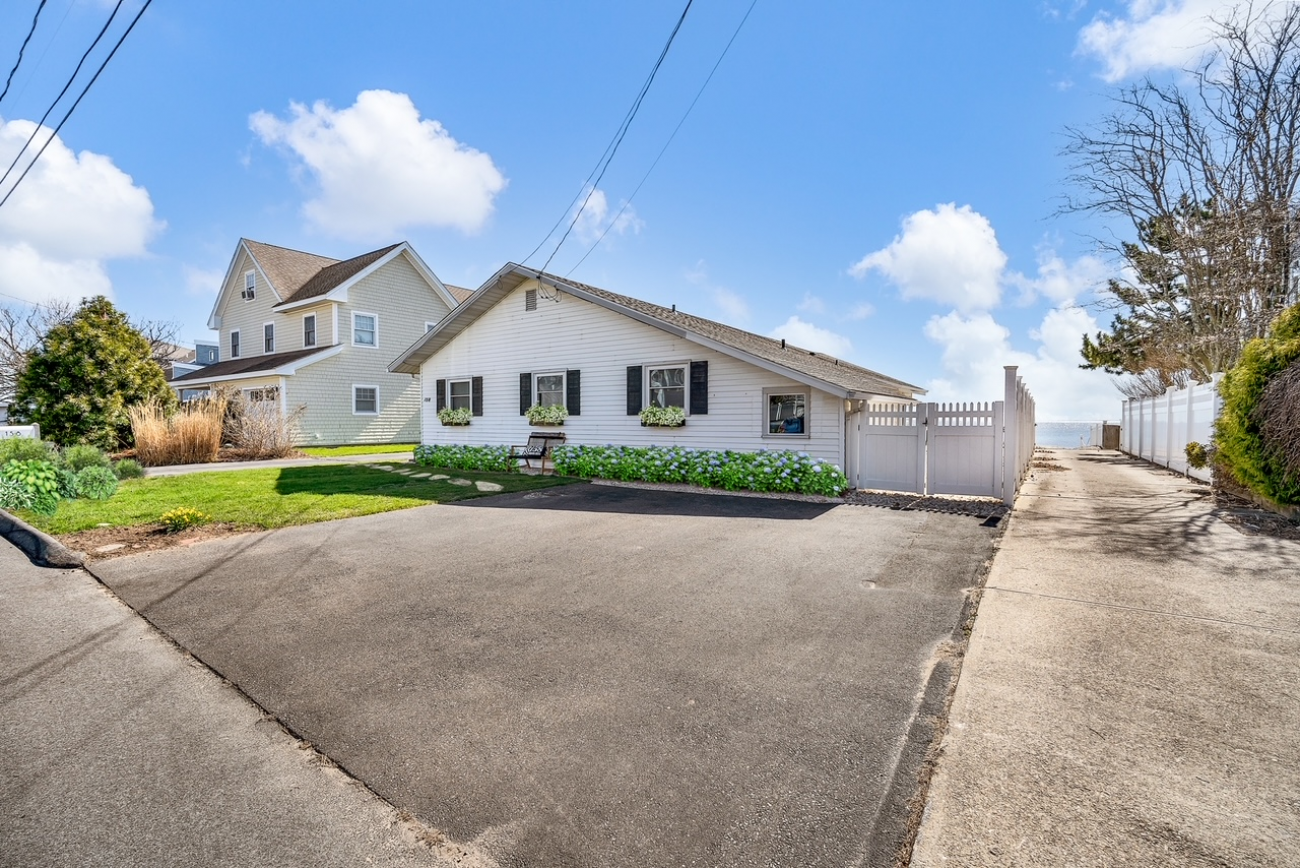 Complete with Tuft & Needle beds, LoveSac couch, washer, dryer, central AC, fully equipped kitchen & BBQ - Sister Sands features spacious outdoor living including patio dining and lounging with expansive direct waterside access at your door & views of the Long Island Sound.