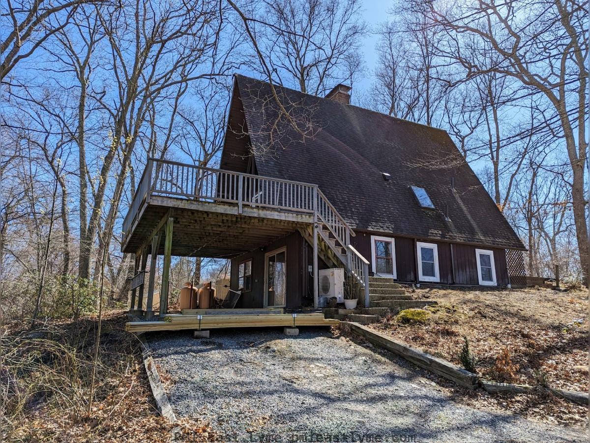 The home sits on a generously sized lot surrounded by trees, creating a private and peaceful atmosphere. The property features a large deck perfect for outdoor entertaining and relaxing on warm summer days.